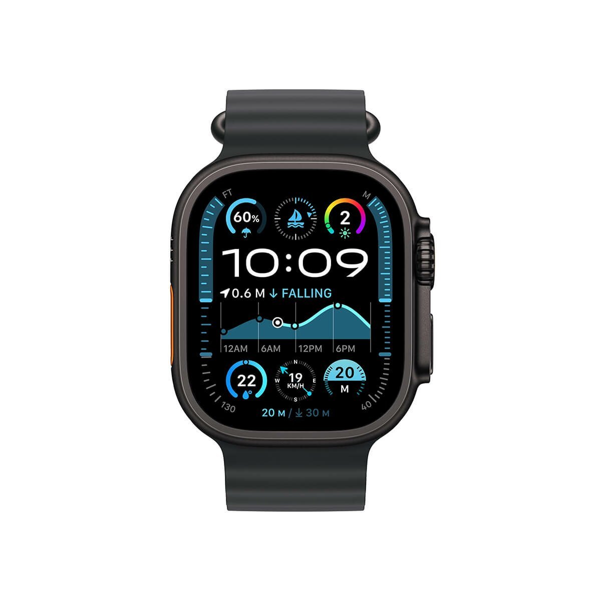 ساعة Apple Watch Ultra 2 49 مم باللون الأسود مع سوار من التيتانيوم باللون الأسود المحيطي